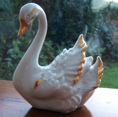Title (ebay affiliate link): Capodimonte white porcelain SWAN with gold/gilt detail.