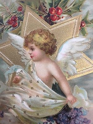 Unsigned Clapsaddle, IAP, Angel, Gold Star, EMB antique Christmas postcard