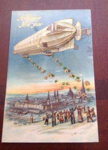 Title (ebay affiliate link): Vintage A Happy New Year Postcard Blimp German Good Luck Horseshoe Hindenburg?