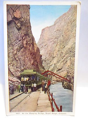 Title (ebay affiliate link): 1920 POSTCARD AT THE HANGING BRIDGE ROYAL GORGE CO, TRAIN