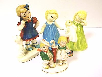 Lot of 4 Vintage Miniature Bone China Chalkware Little Girl Figurines