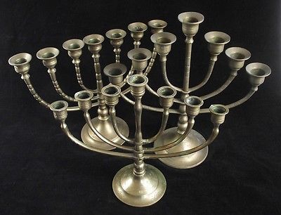 Three Brass 7-Candle Holder Menorahs Candelabras