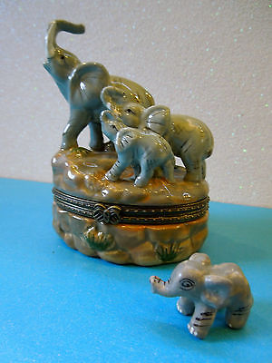 ELEPHANT Family with Baby Inside Limoge Style HINGED TRINKET BOX NEW