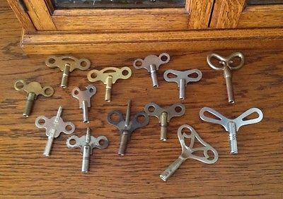13 vintage ,antique and "not so old" CLOCK KEY keys Watchmakers