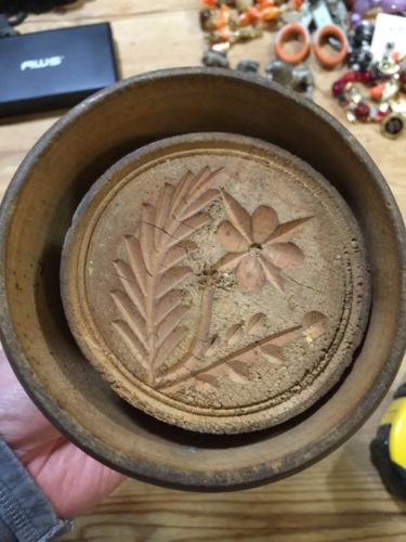 Title (ebay affiliate link): Antique Vintage WOODEN CARVED FLOWER BUTTER STAMP MOLD PRESS Primitive Folk Art