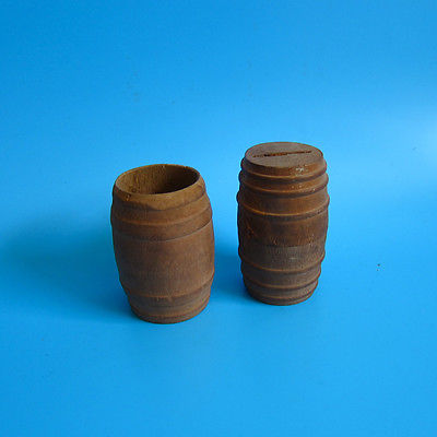 Title (ebay affiliate link): Set of 2 Vintage WOODEN BARREL BANKS Folk primitive antique wood handmade coin
