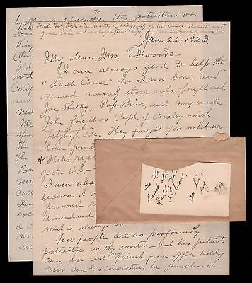 1923 Letter by Son of American Civil War Rebel / Notables Mentioned