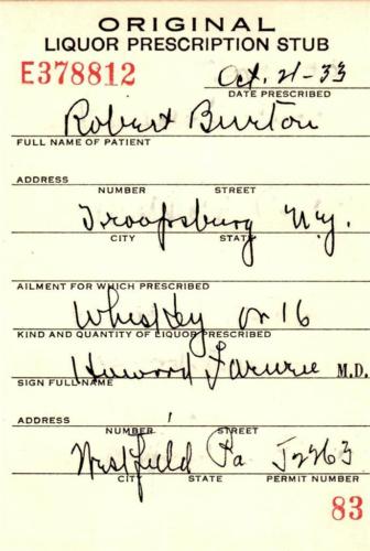 Prohibition Whiskey Prescription Old Medicine Doctor Farwell Stub Westfield PA