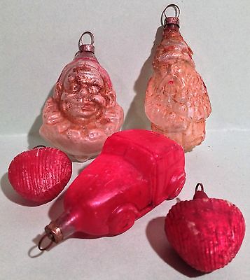 Antique German Glass Christmas Ornaments Santa Claus Clown Touring Car Lot 5 pcs