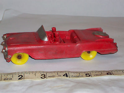 Title (ebay affiliate link): Vintage faded red, dug up 2 door convertible ford plastic toy car & people