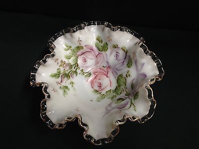 Fenton Mid Century Milk GLass Floral Bowl Fluted Edge Clear Gold Trim