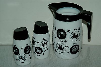 Retro Black & White Zodiac Milk Glass Salt & Pepper Shakers & Creamer MINT
