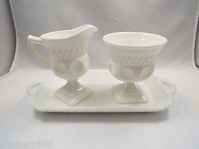Title (ebay affiliate link): Vintage Milk Glass Thumbprint & Diamond Pattern Creamer, Sugar & Tray