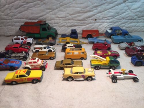 Title (ebay affiliate link): LOT OF 27 TOY DIECAST CARS TRUCKS TRAILERS VTG LESNEY REDLINE TOOTSIE TOY AVIVA