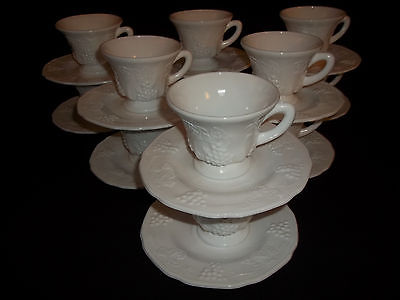 Vtg 12 Cup & Saucer Sets Indiana Glass White Milk Glass Colony Harvest Grape