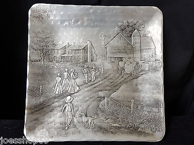 Wendell August Forge Pewter Plate Amish Farm Motif Art Hammered Square