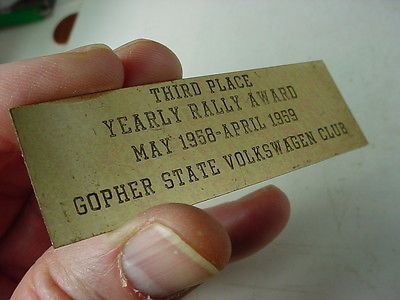 Title (ebay affiliate link): vintage 1958-59 Gopher State Volkswagen Club brass plaque 3rd place Rally VW car