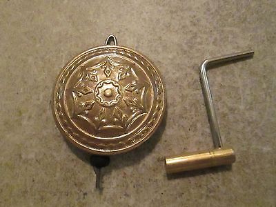 ANTIQUE SHELF,BANJO CLOCK PENDULUM BOB FANCY BRASS OVER IRON BACK W/KEY (691H)