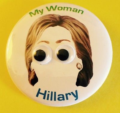 Title (ebay affiliate link): My Woman Hillary With Googly Eyes Pinback Button