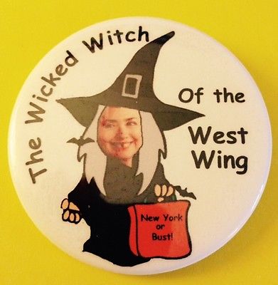 Title (ebay affiliate link): Unique 2 1/4 inch Anti-Hillary Wicked Witch of the West Wing Pinback Button