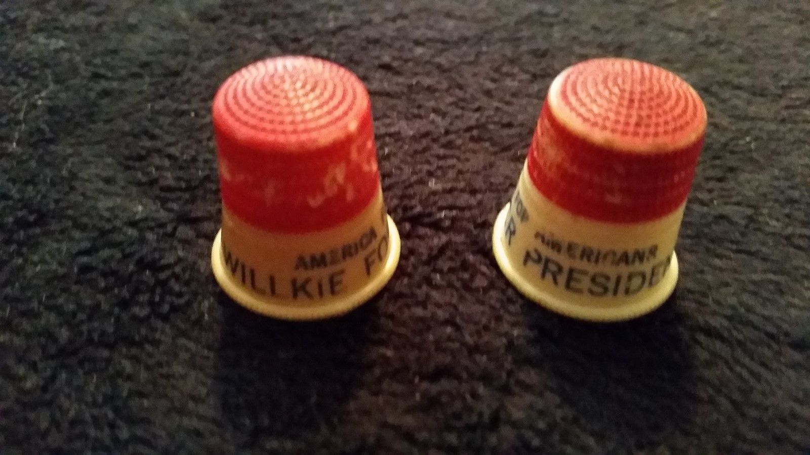 Title (ebay affiliate link): 2 1940 WENDELL "WILLKIE FOR PRESIDENT" ~ "AMERICA FOR AMERICANS" THIMBLES