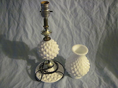 Gorgeous Vintage QUILTED DIAMOND PATTERN WHITE MILK GLASS TABLE LAMP