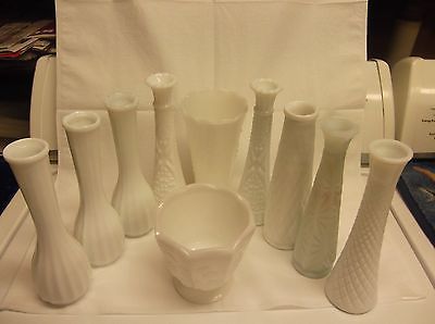 Milk Glass V ases, Lot of 10