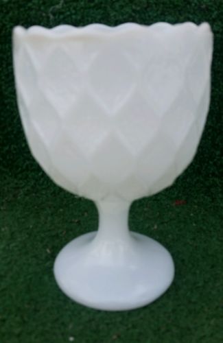 Title (ebay affiliate link): Vintage honeycomb diamond milk glass goblet vase EO Brody MJ-42