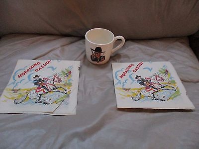 Lot of (3) Hopalong Cassidy Cowboy, Child's Green Milk Glass Cup Mug 2- Napkins