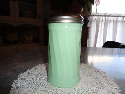 Title (ebay affiliate link): Jadite Green Milk Glass Diner Style Sugar Dispenser Shaker Stainless Top