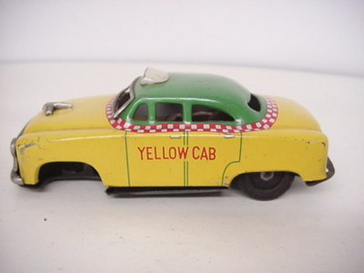 JAPAN TIN FRICTION TOY YELLOW TAXI CAB, 1950s. FOR PART