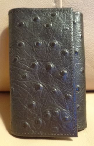 Vintage key ring Key Fob leather Ostrich holds 6 keys dark brown
