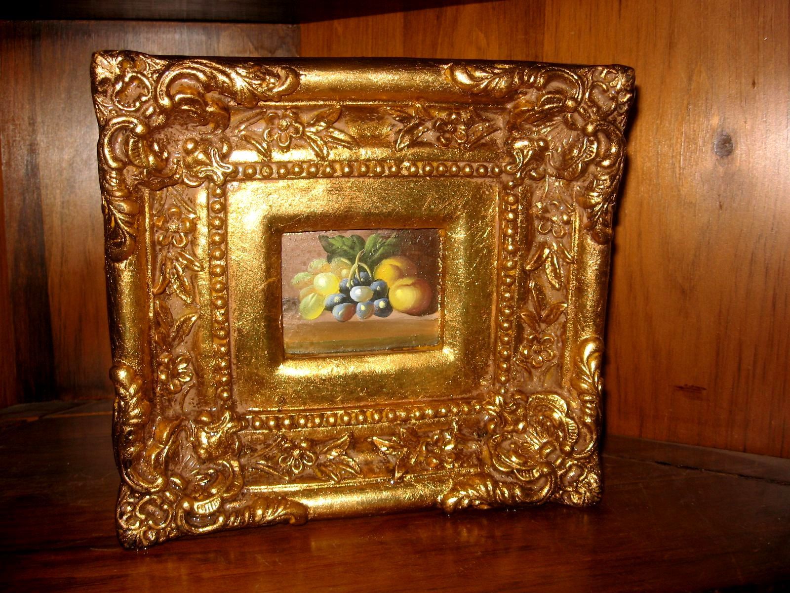 FRUIT ABSTRACT OIL PAINTING in EXTREMELY WIDE GOLD GILDED FRAME