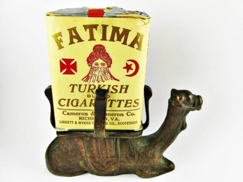 ANTIQUE BRASS FIGURAL CAMEL PAPERWEIGHT DESKTOP FATIMA CIGARETTE PACK HOLDER