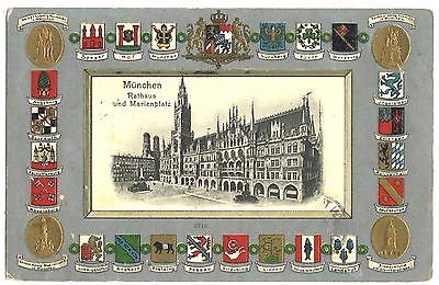 Germany (2) embossed Heraldry Munich Marienplatz 1909 Mathaeserbraeu 1903