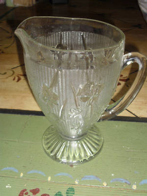 JEANNETTE GLASS IRIS AND HERRINGBONE PITCHER