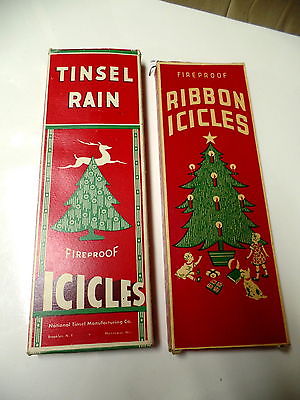 2 VINTAGE UNUSED BOXES CHRISTMAS ICICLES TINSEL MANITOWOC WI WIS WISCONSIN
