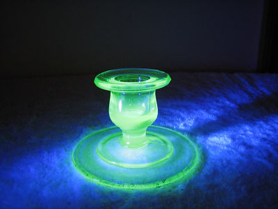 VINTAGE DEPRESSION VASELINE GLASS CANDLESTICK