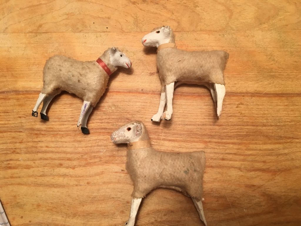 3 VINTAGE GERMANY PUTZ CHRISTMAS SHEEP...LQQK!