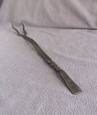 Rustic Old Wrought Iron 16" Fork Curved Tines Twisted Hammered Handle