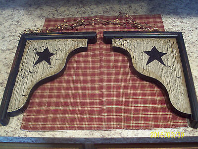 PRIMITIVE CRACKLE BLACK STAR SET OF 2 WOOD DOOR FRAME BRACKET ACCENTS COUNTRY