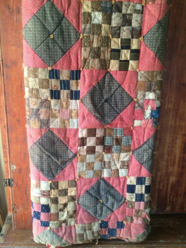 Title (ebay affiliate link): Old Antique Hand Made Quilt Homespun Calico Fabric Textile AAFA