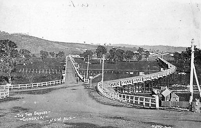 Postcard - Two Bridges, Gundagai, NSW Australia. C1907. Railway.