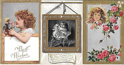 Set of 3 vintage greeting postcards~c1900 postcard~cute little girls