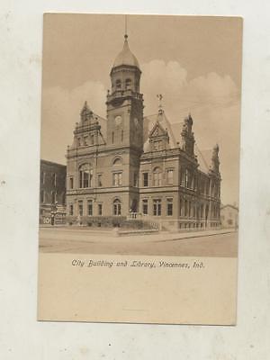 C'1910 City Building and Library,Vincennes,Indiana Postcard