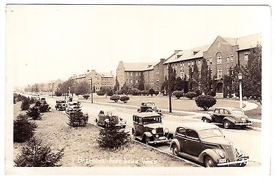1940 REAL PHOTO RPPC BARRACKS FORT LEWIS WASHINGTON CARS ON ROAD