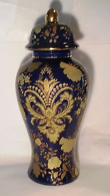 BLUE COBALT GOLD CLOISONNE VASE GINGER JAR WITH LID