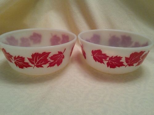 Title (ebay affiliate link): 2 Vtg Hazel Atlas Milk Glass Red Maple Leaf Cereal cottage cheese Bowl 5" 1950's