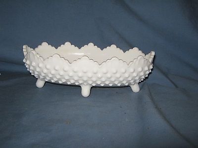 Fenton White Milk Glass Hobnail Oval Relish Tray Dish Footed