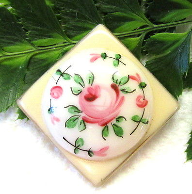 Title (ebay affiliate link): BEAUTIFUL ANTIQUE SQUARE MILK GLASS BUTTON W/ PINK ROSETTE C9